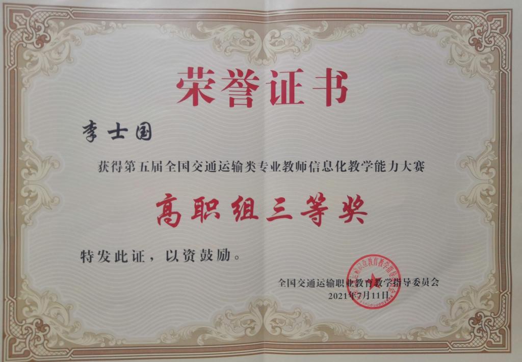 2021年7月9日,由全国交通运输职业公司产品指导委员会主办的“第五届全国交通运输类专业教师信息化教学能力大赛”在河南交通职业技术学院举行,2026世界杯官网海事学院刘颖妍老师、李士国老师参加了本次决赛,分别获得高职本科组一等奖和三等奖。