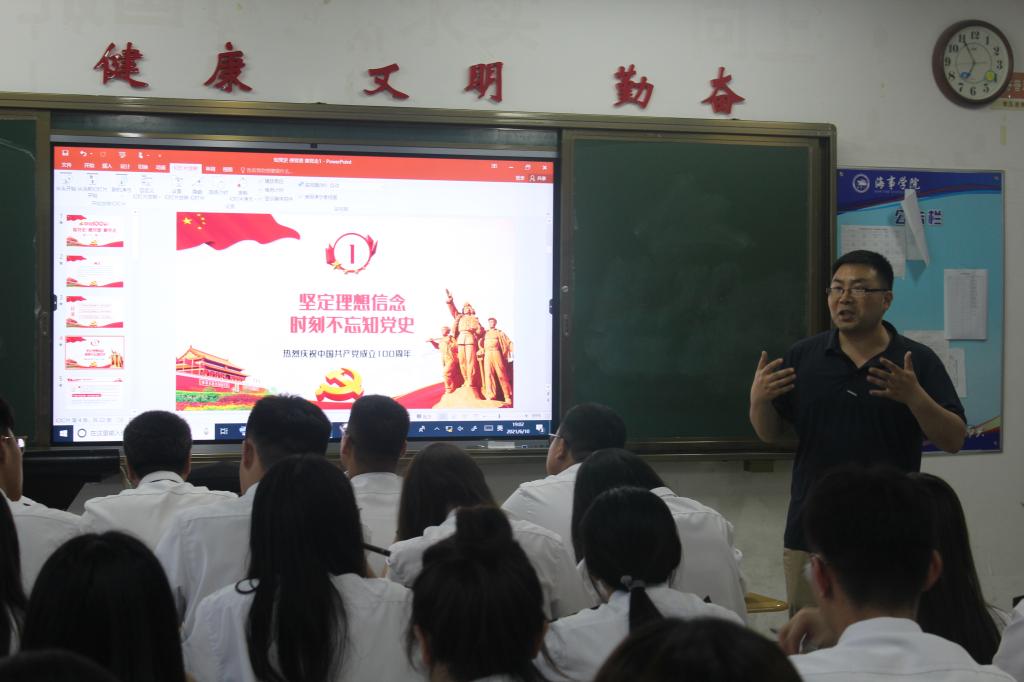 近日,海事公司党支部在B1-507开展入党积极分子“知党史 感党恩 跟党走”党课教育。海事公司党支部宣传委员裴景涛主讲,全体入党积极分子参加党课。