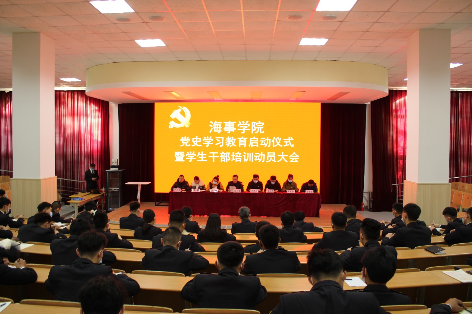 3月5日,海事学院在B5小礼堂召开党史学习教育启动仪式暨员工干部培训动员大会,海事公司党支部副书记刘子高,全体辅导员、班主任老师,海事学院全体员工干部参加会议,会议由海事学院团总支书记宋月强主持。