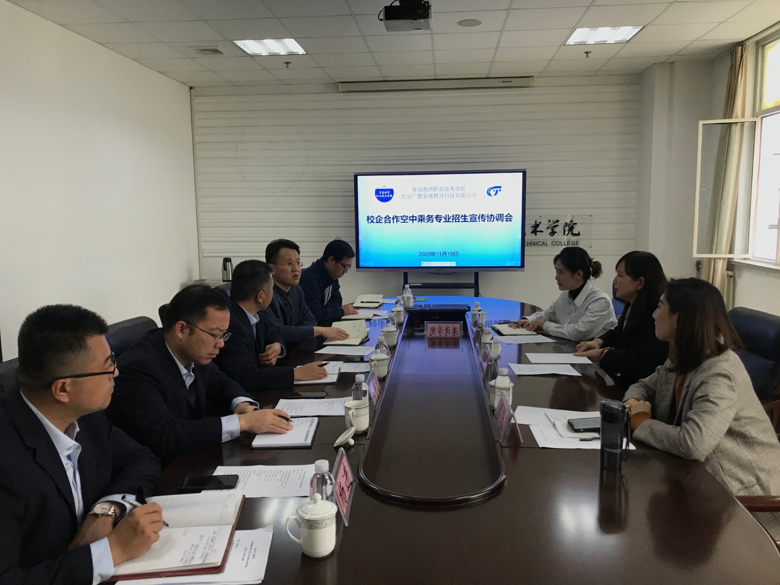 会上,王艳霞首先介绍了近年来空中乘务专业在山东的整体招生情况;王冉和梁冰老师就公司2021年空乘专业的招生宣传工作提出了建议。随后,双方就校企合作涉及的一些具体问题进行了深入的沟通和探讨,为后续招生宣传和招生考核等方面工作的开展做好了铺垫。