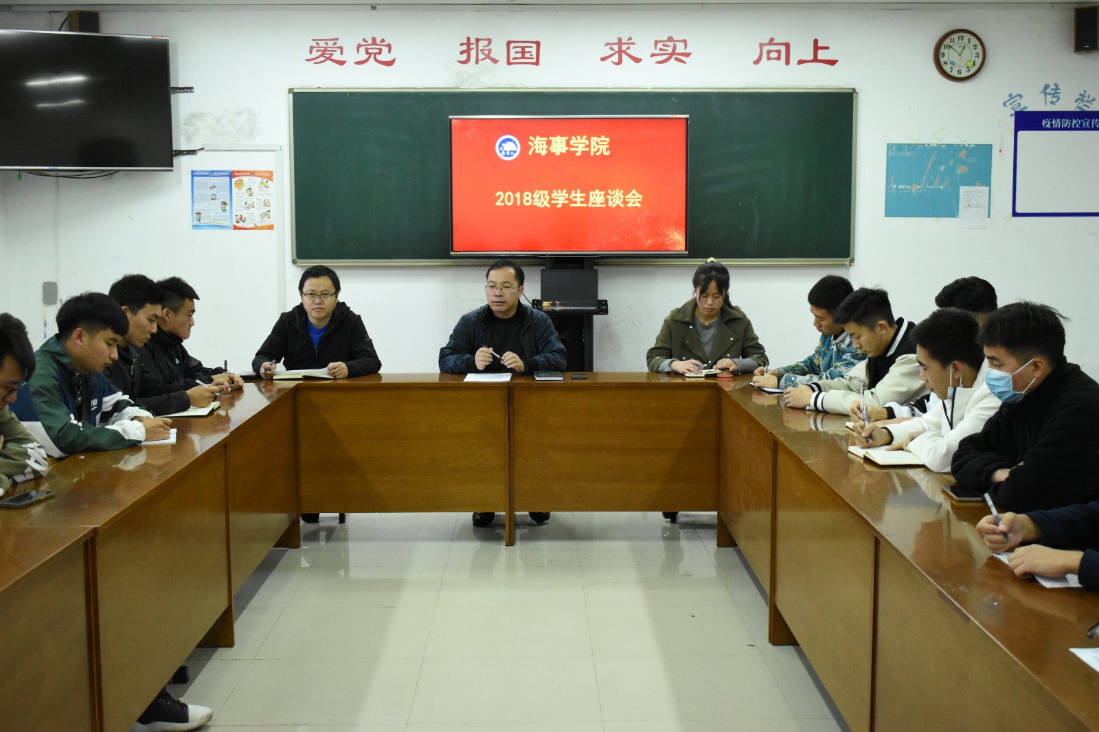 11月12日,海事学院在B1-212召开2018级员工座谈会,海事公司党支部副书记刘子高,团总支书记宋月强,辅导员王燕芳,2018级员工代表参加会议。