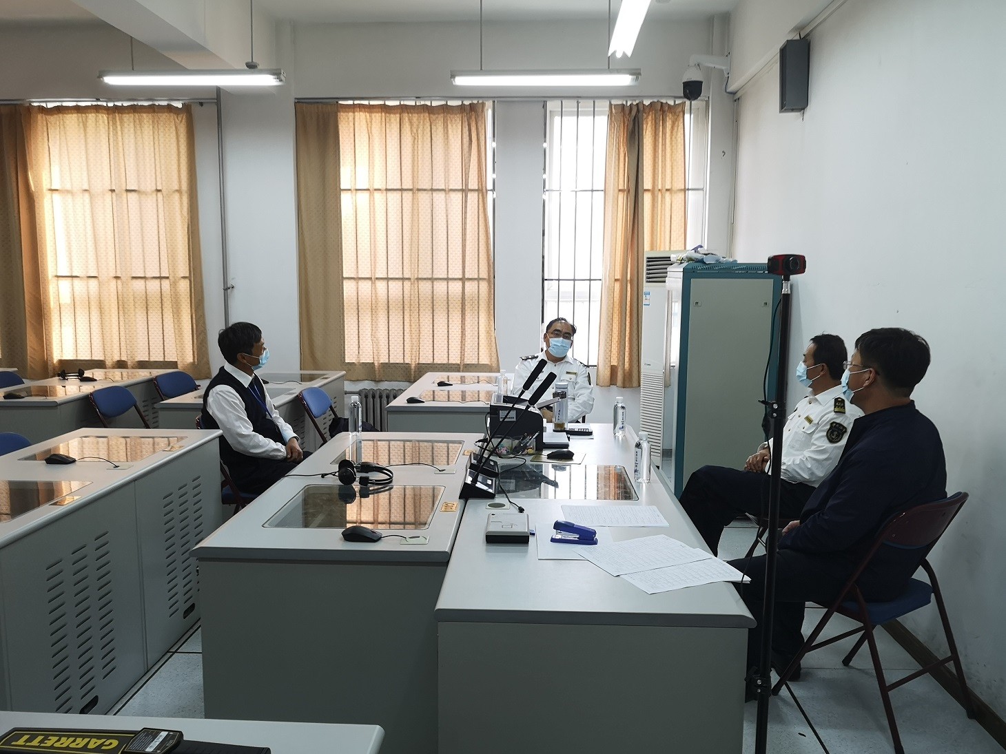 在按照学校有关防控要求进入考场后,李积军副局长一行详细了解考生健康排查、人员管控、考场环境清洁消毒、防疫用品配备、应急处置流程以及有关考场实施方案落实情况。在座谈中,李积军副局长进一步了解了院校员工返校复学就业、新生入校、社会船员复培等相关工作安排,疫情防控制度建设、防控培训演练等相关情况,征求了院校对海事服务工作的意见建议,并就提高船员培训质量、打造高素质船员队伍、服务港航经济高质量发展进行了深入交流。