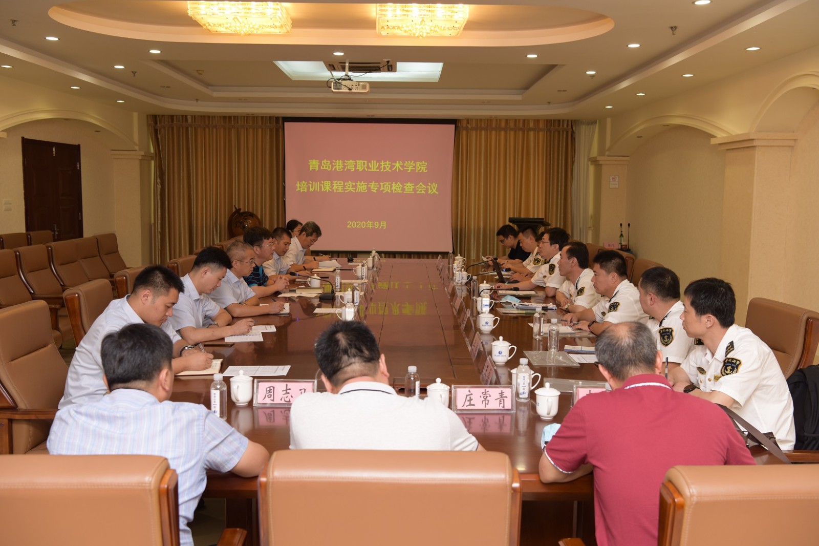 9月9日,青岛海事局副局长彭德洋,山东海事局船员处郭传光、朱启增,青岛海事局、烟台海事局、日照海事局及相关院校领导专家12人,对公司培训课程实施情况进行专项检查。刘民董事长,王海蛟副董事长以及海事学院领导、相关老师陪同检查。