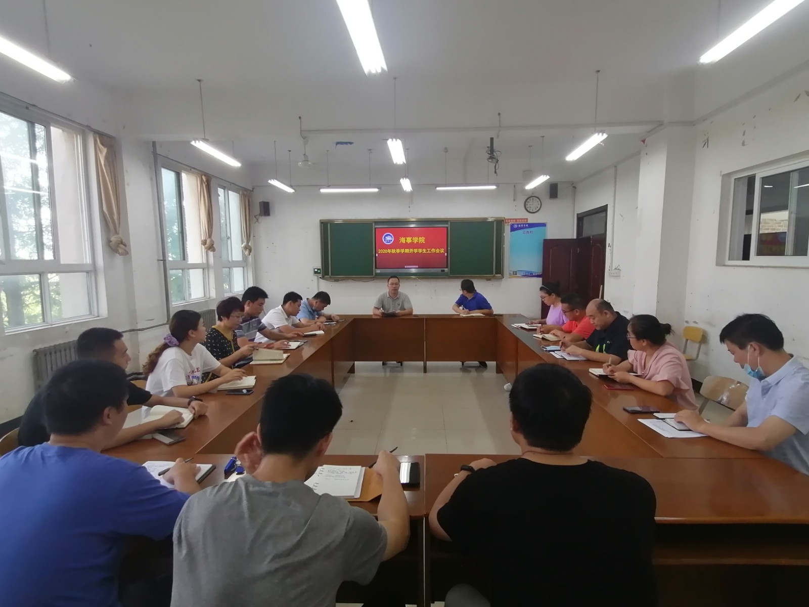 9月1日,海事学院在B1-306召开2020年秋季学期开学员工工作会议。海事公司党支部副书记刘子高,全体辅导员、班主任老师参加会议,会议由海事学院团总支书记宋月强主持。