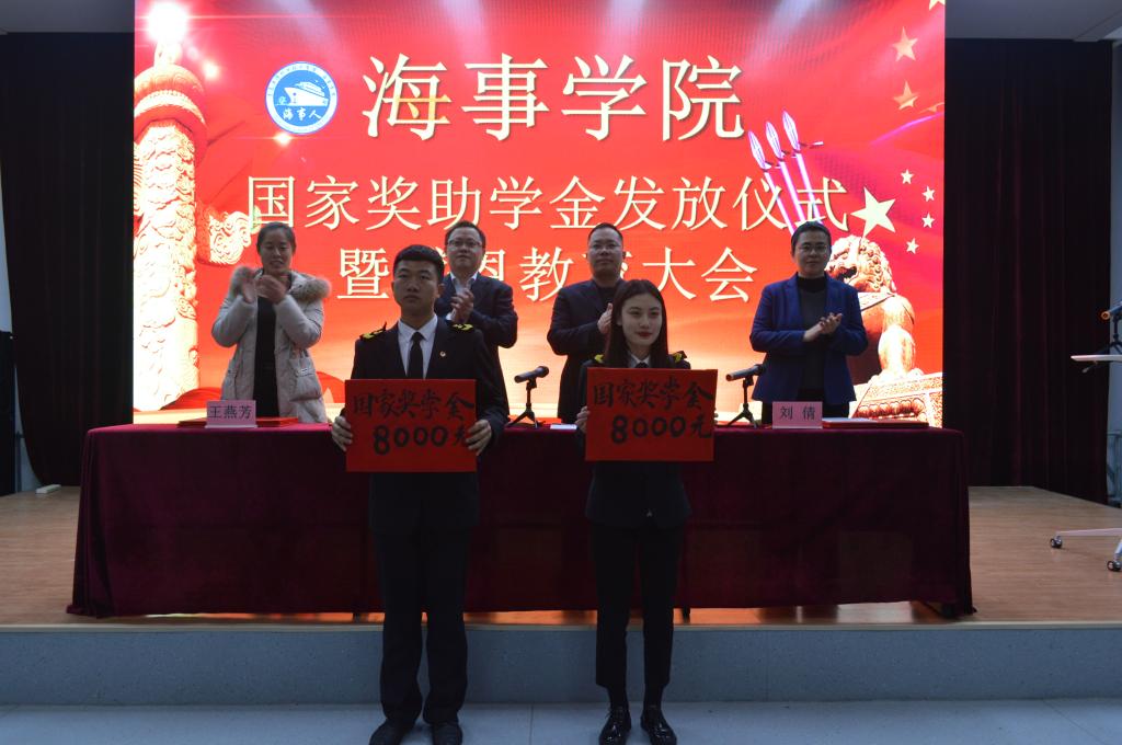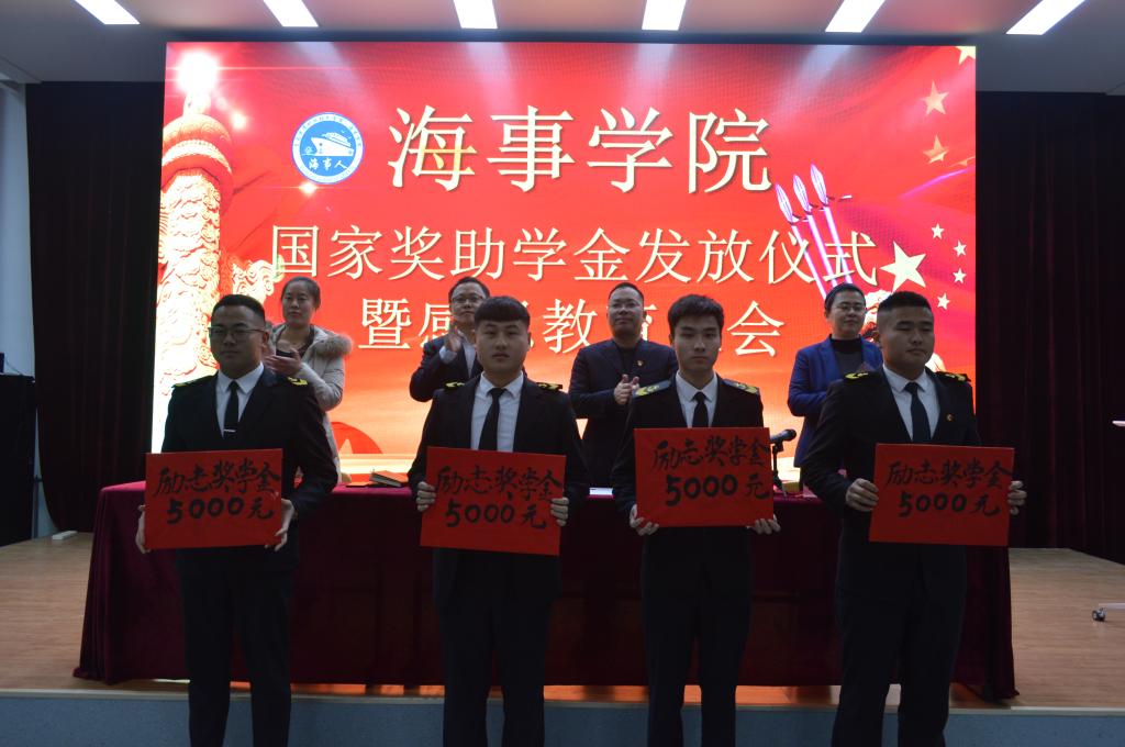 12月24日下午,海事学院在B5小礼堂举办国家奖助学金发放仪式暨感恩教育大会,海事公司党支部书记刘子高,团总支书记宋月强,辅导员王燕芳老师,全体受助以及获奖员工参加会议,会议由辅导员刘倩老师主持。
