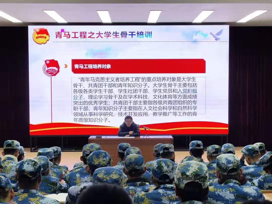 11月27日,海事学院团总支书记宋月强在B5小礼堂为海事学院承训教官和148名新生骨干做“做一名坚定地青年马克思主义者”主题讲座。