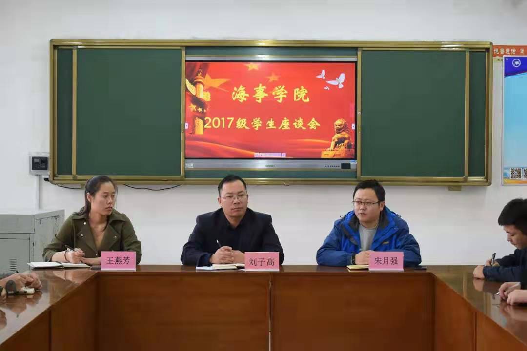 11月15日,海事学院于B1-306召开海事学院2017级员工座谈会,海事公司党支部书记刘子高,辅导员王燕芳,17级各班班长、团支书参加会议,会议由海事学院团总支书记宋月强主持。