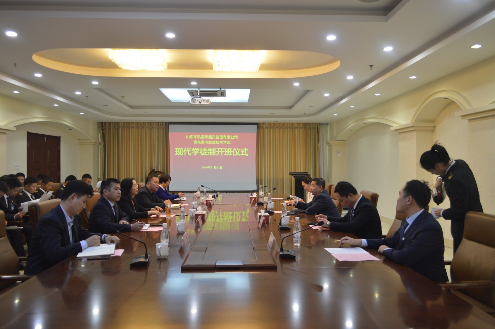 11月12日下午,学校在A606会议室举行山东东弘国际船员管理有限公司现代学徒制开班仪式。出席仪式的有学校人才招聘办公室主任赵艳君、海事学院经理孙增华、党支部书记刘子高、经理助理聂涛,以及香港华光海运控股有限公司代表王希、山东东弘国际船员管理有限公司总经理姜明旸、船员部经理王少雷等,开班仪式由人才招聘办公室赵晓明主持。