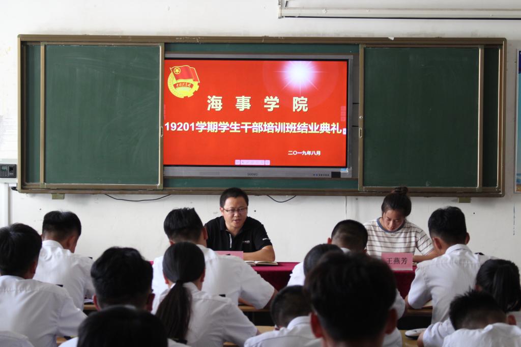 8月23日下午,海事学院在B1-307召开19201学期员工干部培训班结业典礼,海事学院辅导员王燕芳老师、全体员工干部参加会议,会议由海事学院团总支书记宋月强主持。