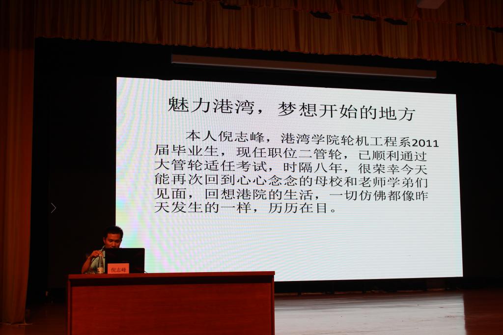 为充分发挥优秀毕业员工的影响力,7月1日,公司特邀请优秀毕业生陈宾鸿、倪志锋在A0学术报告厅举办优秀毕业生报告会,海事学院孙增华经理、党支部书记刘子高,大一大二水上专业员工参加会议,会议首先宋老师为我们介绍两位优秀员工。