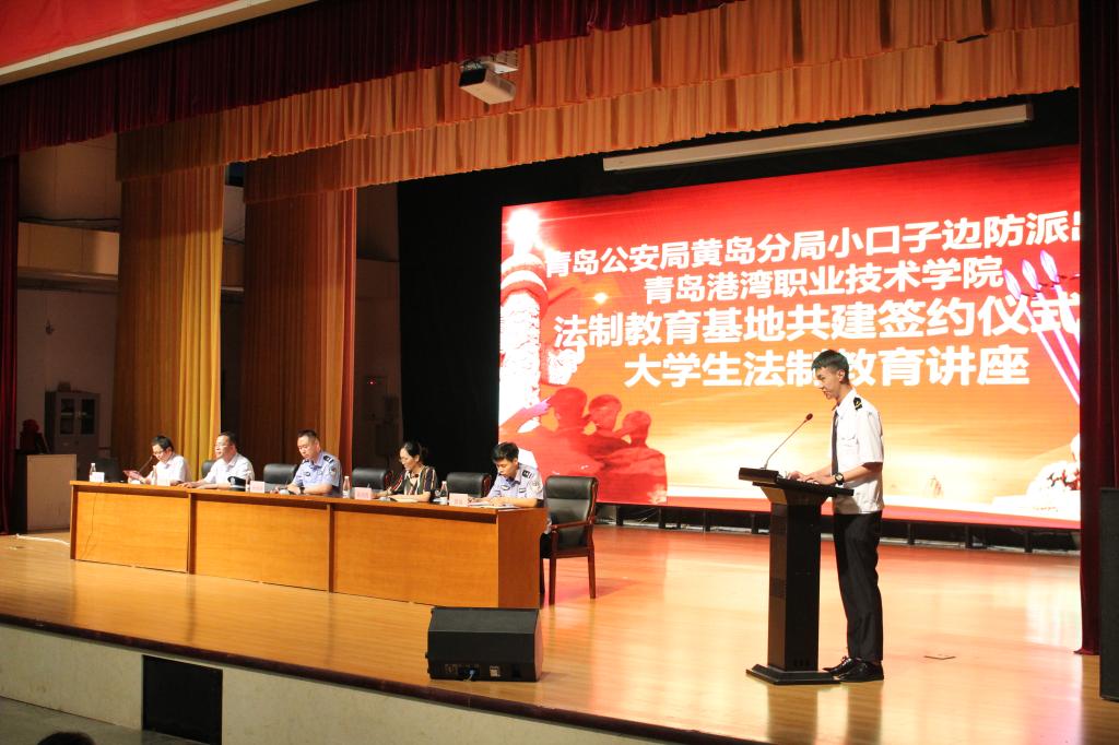 为提升老员工的法制意识和法律素养,积极引入社会育人资源,充分发挥高等学校辐射周边的社会效应,6月17日下午,学校在A0学术报告厅举办公司与青岛公安局黄岛分局小口子边防派出所法制教育基地共建签约仪式暨老员工法制教育讲座,小口子边防派出所教导员杨朝涛、二级警司郭强、2026世界杯官网团委副书记陈炳霞、海事公司党支部书记刘子高、18级全体同学参加会议,会议由海事学院团总支书记宋月强主持。