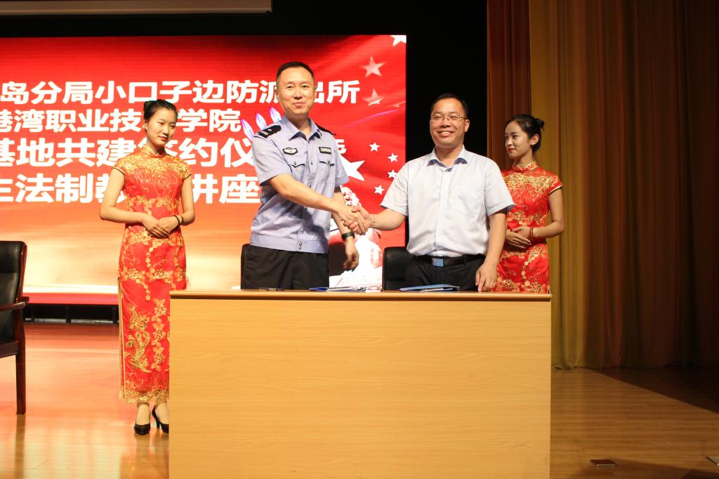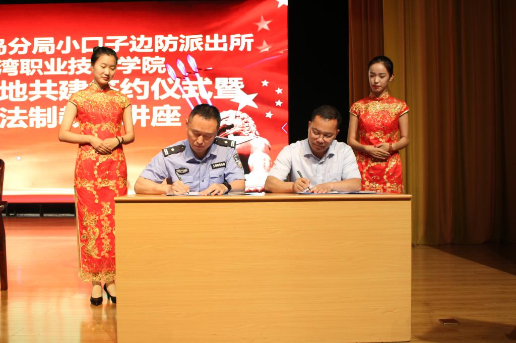 会上,小口子边防派出所教导员杨朝涛同海事公司党支部书记刘子高签署共建协议并为学校法制教育基地揭牌,杨朝涛教导员和陈炳霞书记分别致辞。员工代表宋世鑫宣读争做学法、知法、守法老员工倡议书。