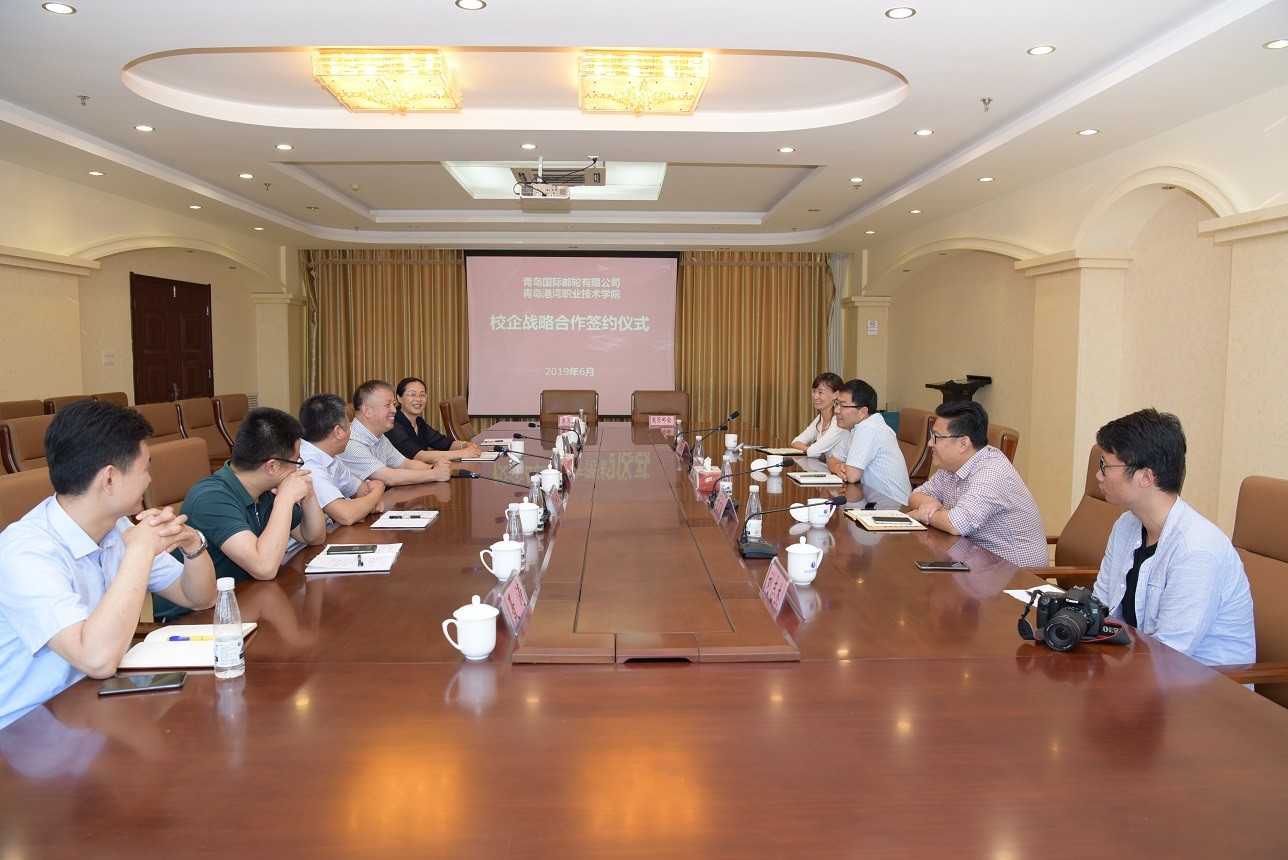 6月11日上午,学校在A0-A606隆重举行与青岛国际邮轮有限公司校企战略合作协议签约仪式。青岛国际邮轮有限公司总经理王涛,董事长刘民出席会议,会议由人才招聘办主任赵艳君主持。参加大会的还有国际邮轮总经理助理刘文韬,操作部经理李月妍以及海事学院经理孙增华,信息与电气工程学院经理苏本知,人才招聘办副主任高峰,海事公司党支部书记刘子高,经理助理聂涛等相关领导。