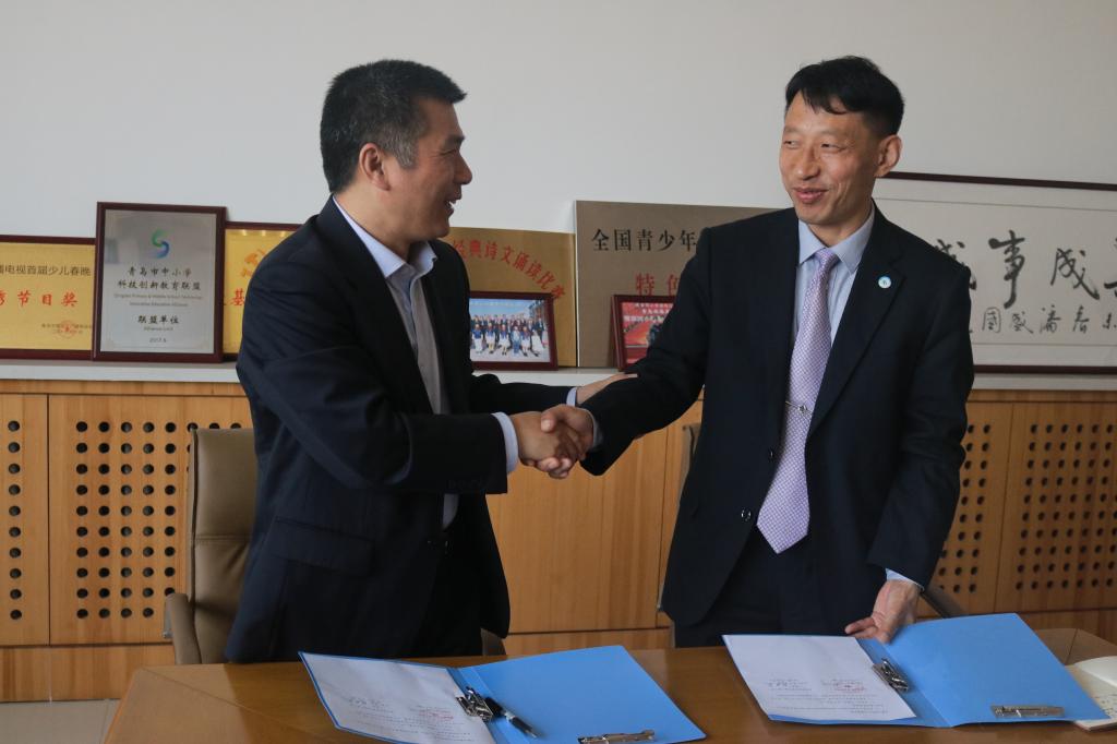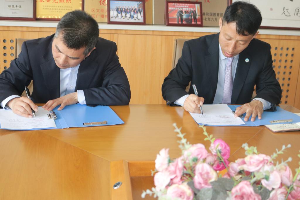 4月18日上午,海事学院与海之韵小学签订德育教育基地协议,海事学院经理孙增华、党支部书记刘子高、团总支书记宋月强、辅导员王燕芳共同见证这一时刻。