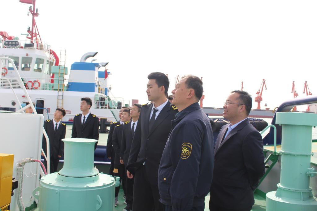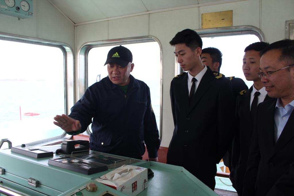 初入港口,老船长讲解了上船前的注意事项,一切活动以安全为首要,遵守港口行为准则,老船长对同学们今后的工作和生活给予四点建议,要像海绵一样不断吸取新知识,在工作中要思路要创新、方向要正确,要踏踏实实做一名好人、做好自己分内之事,要有吃苦耐劳的精神。 随后,同学们参观了船上的生活区和工作区,由大副讲解船上的一流先进航行设备,介绍了船舶安全逃生设备,同时还为同学们留下课后思考作业。最后,轮驳分公司程书记对员工提出定好位、做好人、干好事三点期许。