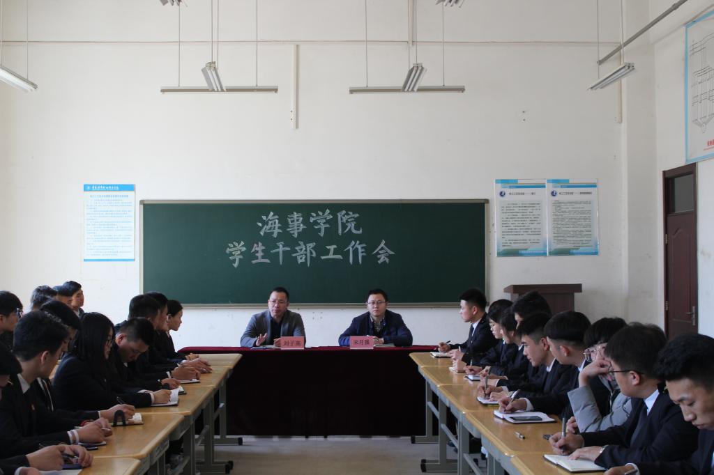 为了解决各部门存在的问题,加强学院管理工作,海事学院于3月13日下午在B1–306召开了员工干部工作会。海事公司党支部书记刘子高、团总支书记宋月强及各员工会部长、副部长参加会议。