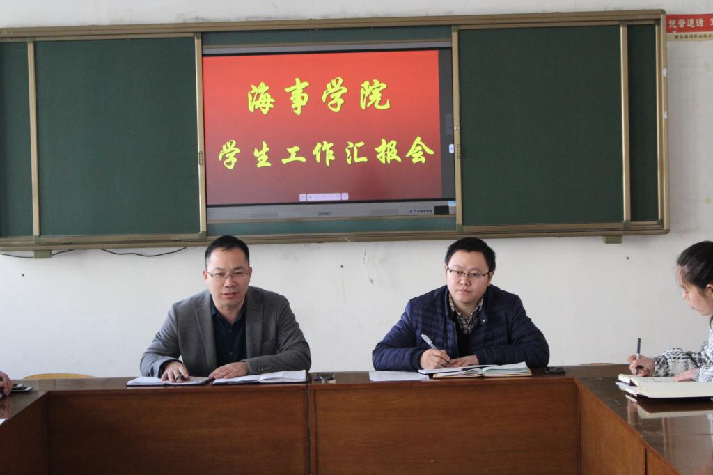 3月14日上午,海事学院在B1-306召开员工工作汇报会,全体辅导员老师参加会议,会议由海事公司党支部书记刘子高主持。