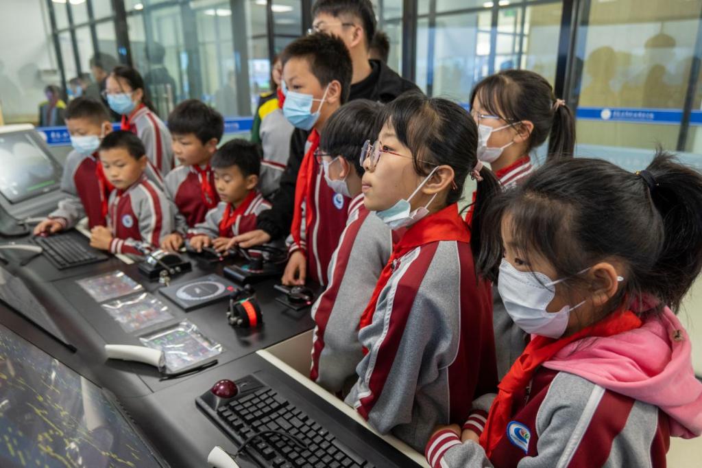 海事公司党总支副书记刘子高对海滨小学师生致以热烈欢迎,开展了此次社会实践活动第一课。在海事学院谯兴朋、夏文彩、董迪、孙林波等四位船长科普了海洋知识、航海知识,参观了船模展览区以原船等比例缩放的船舶模型;通过360度全方位立体航海模拟器展示了海上情形,小小航海家们在四位船长的的带领下亲自上手操作,掌握方向,控制航速做了一回“小船长,体验了一次难忘的航海之旅,实践活动得到了海滨小学师生的一致好评。