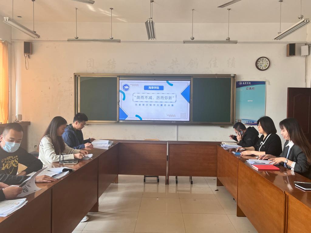 近日,海事学院在B1-403举办“简而不减,历而弥新”完美简历制作大赛总决赛,全体辅导员参加并担任评委,大赛由辅导员刘倩主持。