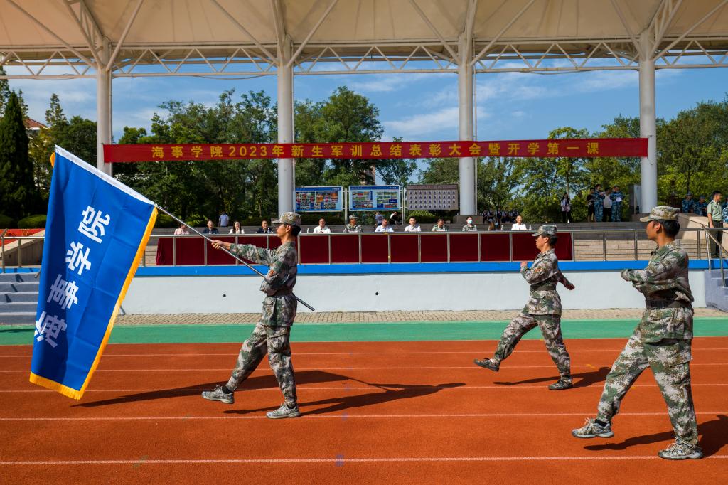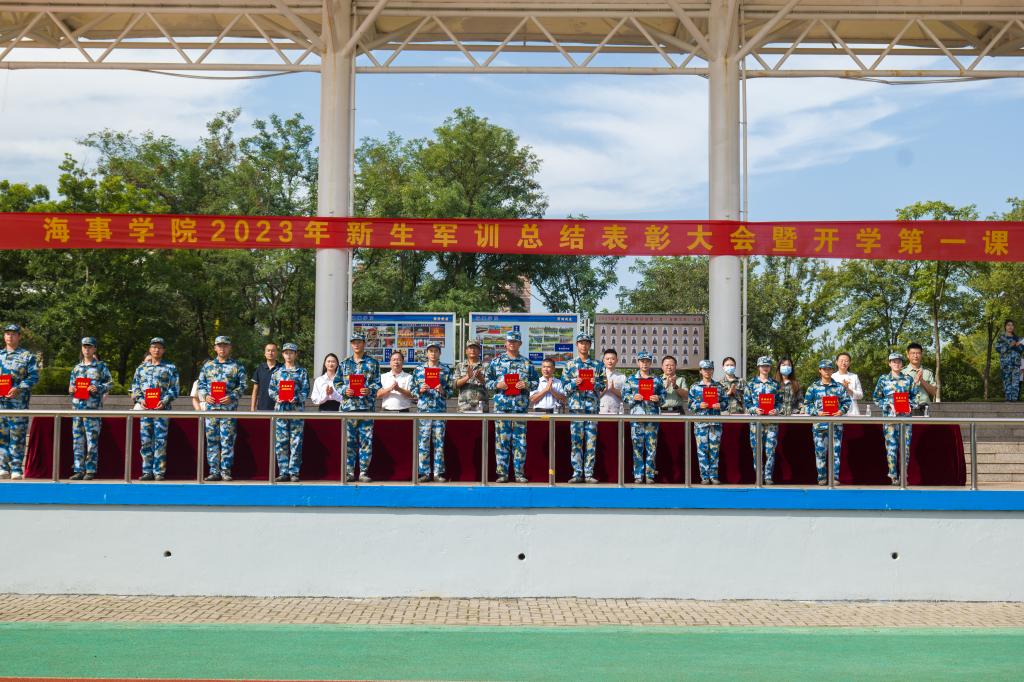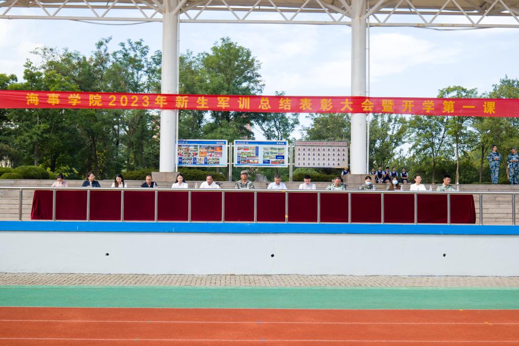 9月15日,海事学院在学校足球场召开2023级新生军训总结表彰大会暨开学第一课,北部战区第八训练基地田学超中校、海事学院经理孙增华、北京广慧金通教育科技有限公司周杨超主任、山东东弘国际船员管理有限公司任鑫宇老师、海事学院团总支书记宋月强、海事学院英语教研室主任周昕老师、军训负责老师高延年、全体辅导员老师、全体教官助理、辅导员助理,2023级全体新生参加,大会由海事公司党总支副书记刘子高主持。