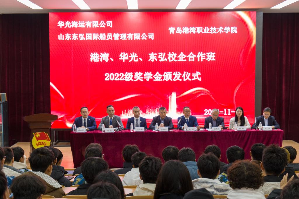 11月16日,海事学院在B5小礼堂举行“港湾、华光、东弘校企合作班2022级奖学金颁发仪式暨2023级新生见面会”,以表彰激励在上一年度中学习优异、表现突出的同学,同时鼓励指引新生向上一级同学看齐、争创佳绩。