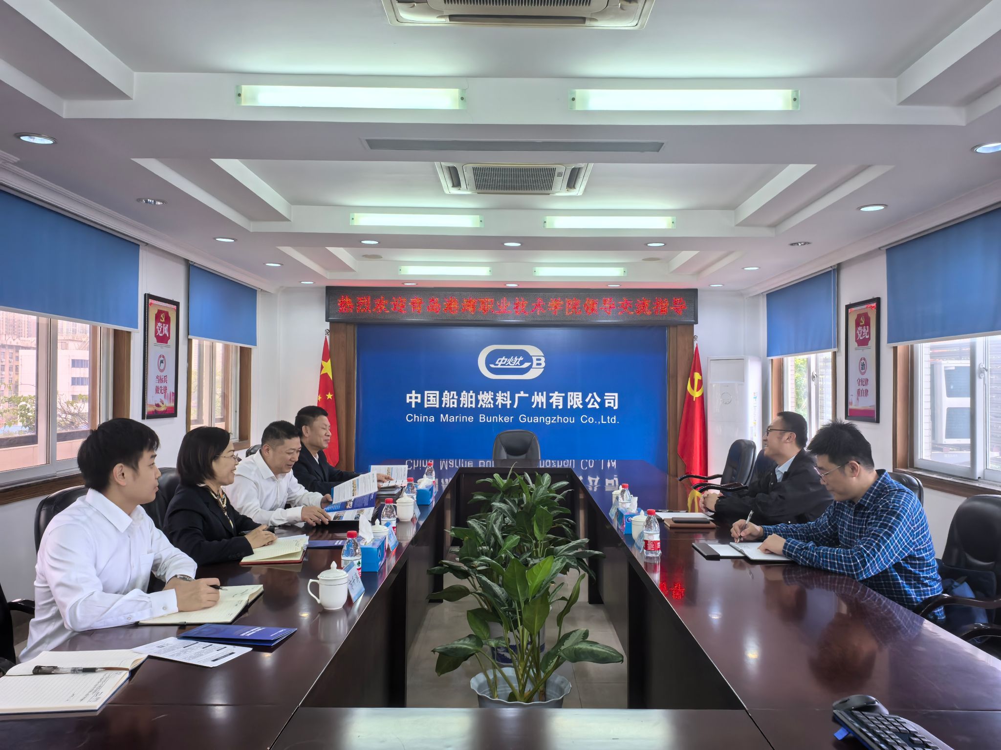 为搭建高校与企业之间合作的桥梁,拓宽员工就业渠道,提升人才培养质量,促进员工高质量就业,近日,公司党总支书记、经理张楠,党总支副书记纪栋尚,辅导员高延年、秦宝怡一行走访了中国船舶燃料广州有限公司、东弘国际海事服务集团、山东港口航运集团有限公司、山东远洋海运集团股份有限公司等企业。