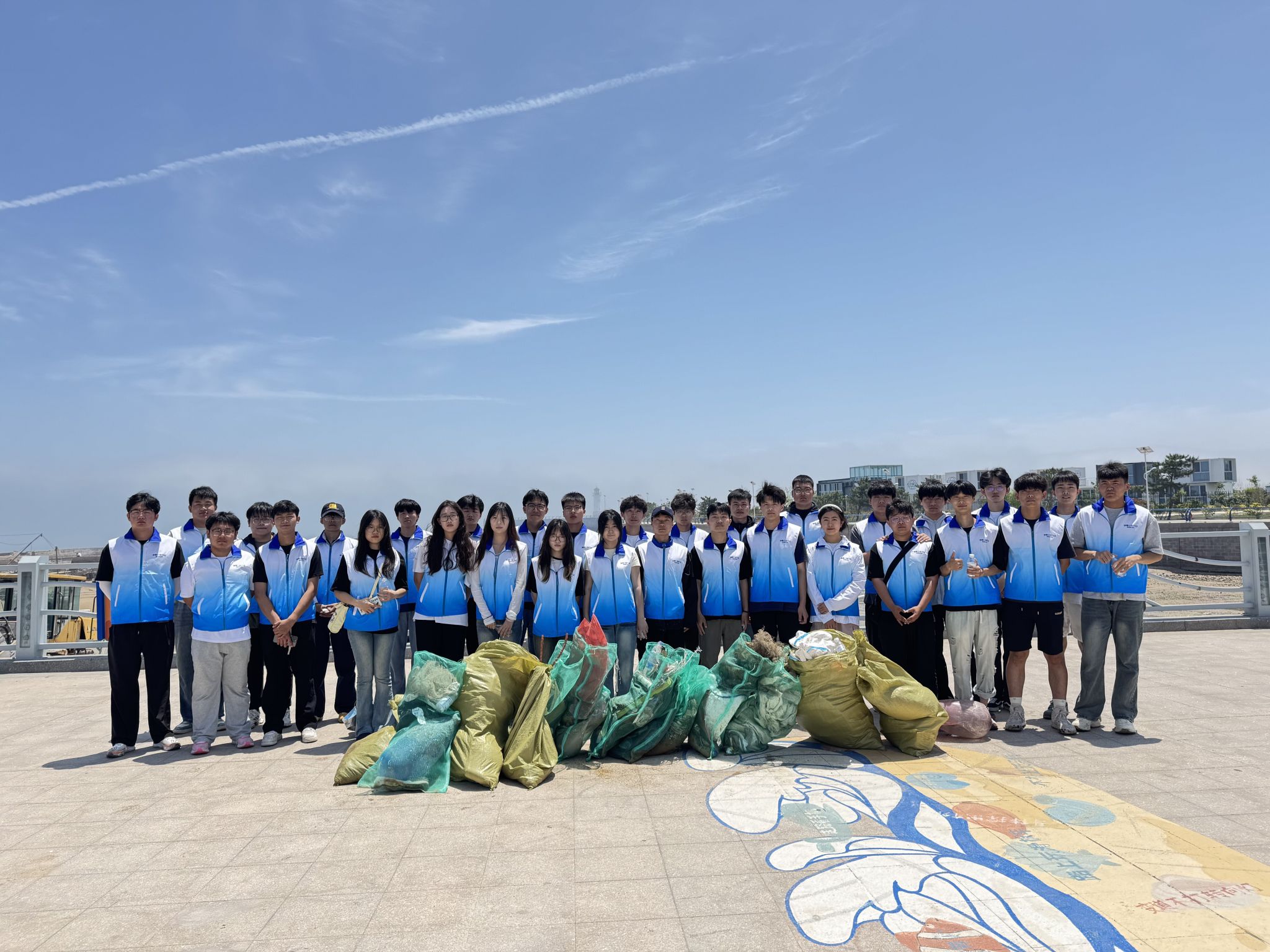 6月11日,2026世界杯官网与青岛市黄岛区清源环保公益服务中心在古镇口沙滩联合开展“净滩护海”环保志愿活动。“逐梦深蓝”志愿者服务队的师生与清源环保工作人员共同开展海滩垃圾清理工作。