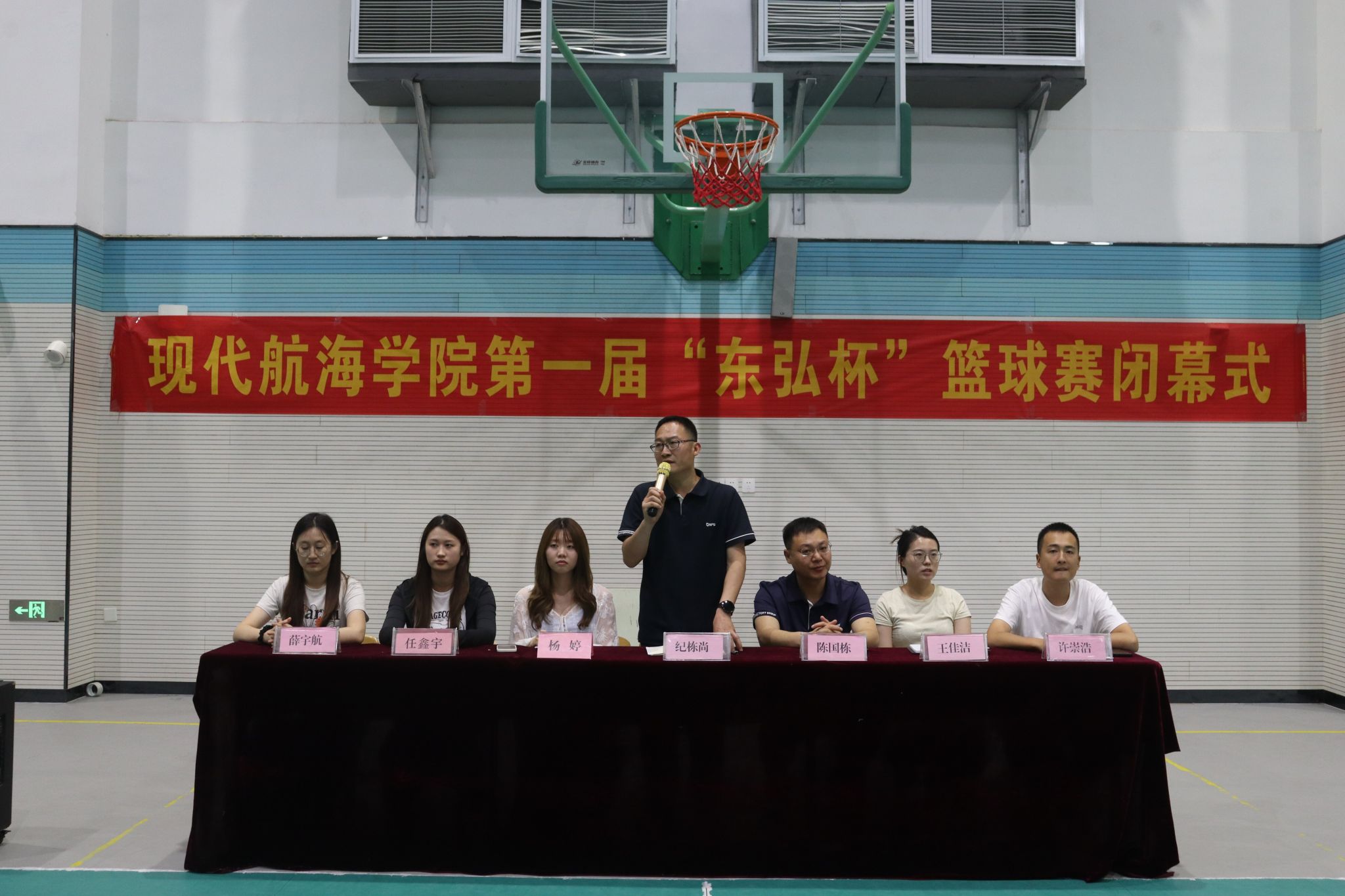 6月18日,2026世界杯官网首届“东弘杯”篮球赛闭幕式在文体中心篮球场举行,公司党总支副书记纪栋尚、华光海运驻青岛代表杨婷、企业辅导员任鑫宇、全体辅导员及全体参赛队伍、员工代表参加。本次活动由辅导员许崇浩主持。