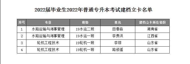 通知公告 当前位置: 首页 >> 新闻中心 >> 通知公告 >> 正文 海事学院2022届毕业生2022年普通专升本考试建档立卡名单公示 发布日期:2022-03-05 点击: 海事学院2022届毕业生2022年普通专升本考试建档立卡名单公示,详见附件,如有疑问请与海事学院联系。 公示期:2022年3月5日-3月9日 附件【2022届毕业生2022年普通专升本考试建档立卡名单.pdf】已下载次 上一篇:2026世界杯官网21级空乘专业选购事项告知书 下一篇:2026世界杯官网2023届毕业生2026年专升本校荐生名单公示